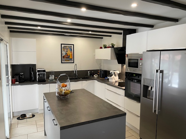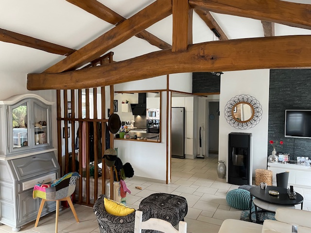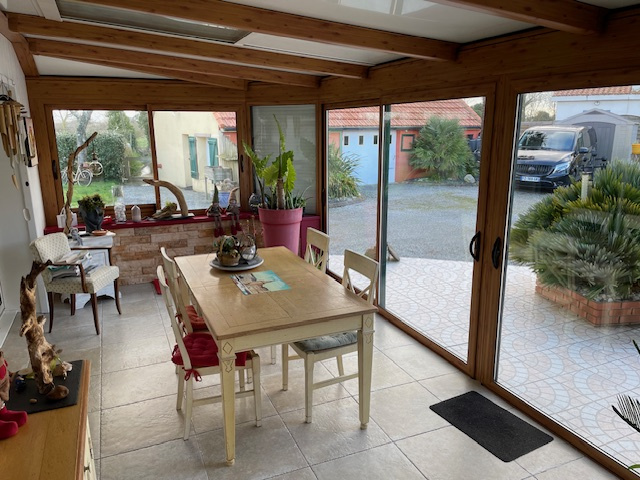 [corps_impression] => Belle maison lumineuse et confortable à 2 minutes du bourg et au calme. Entrée par une véranda de près de 20 m2 donnant sur le salon-séjour double de plus de 40 m2 avec poêle à pelets. Accès à une terrasse intime sur l'arrière de la maison. Cuisine moderne ouverte sur le séjour. Cellier. Dégagement sur le couloir desservant trois belles chambres lumineuses avec rangements. Dressing. Salle de douches. wc séparés. Atelier, garages, bâtiment en annexe. 'Les informations sur les risques auxquels ce bien est exposé sont disponibles sur les Géorisques : www.georisques.gouv.fr' - Honoraires d'Agence Inclus de 4.86 % TTC à la charge de l'acquéreur. Prix net vendeur 350.000 euros. Montant estimé des dépenses annuelles d'énergie pour un usage standard entre 1910 et 2640 euros (Prix moyen des énergies indexés sur le tarif 2021-22-23)